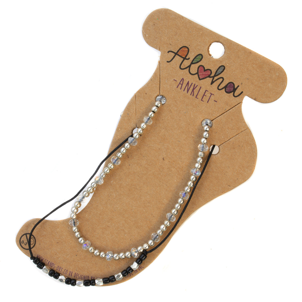AL054 - Aloha Summer Anklet Bracelet - Black And Silver