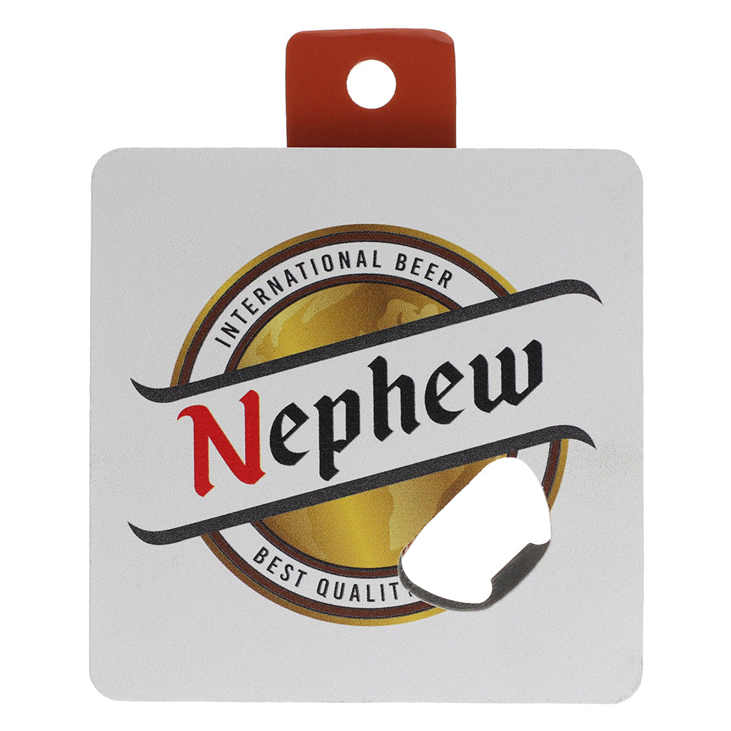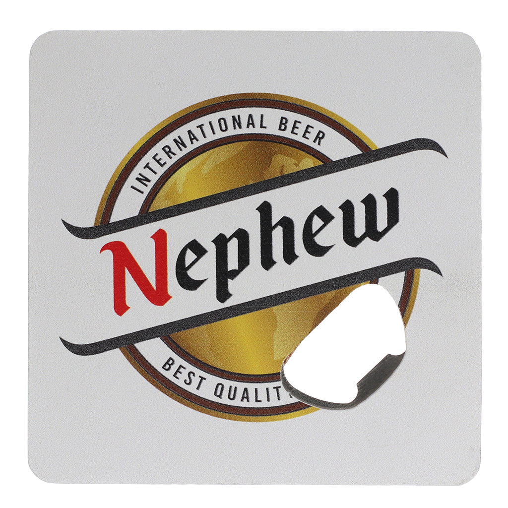 Beer lovers look no further. Introducing our lager inspired "Nephew" Bottle Buddy. With a built-in bottle opener, a strong magnet for easy storage, and a stylish coaster surface, it's the ultimate accessory for any home bar, kitchen, man cave, or BBQ setup.