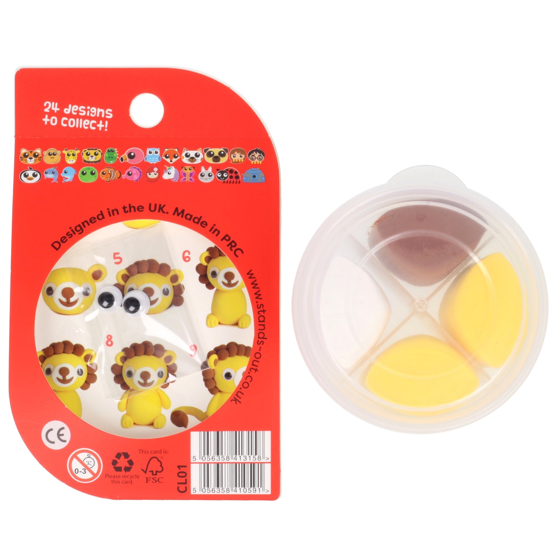 Each pot comes with 4 sections of soft squidgy polymer clay with enough colours to create your Lion character.