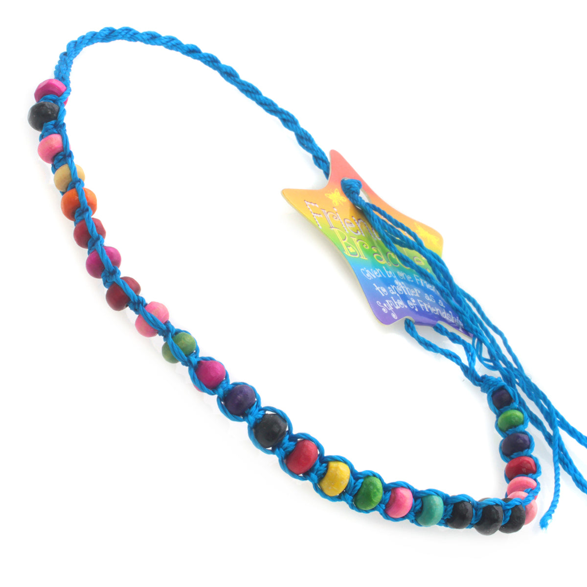FB-A10 - Blue Friendship Bracelet With Multicoloured Beads
