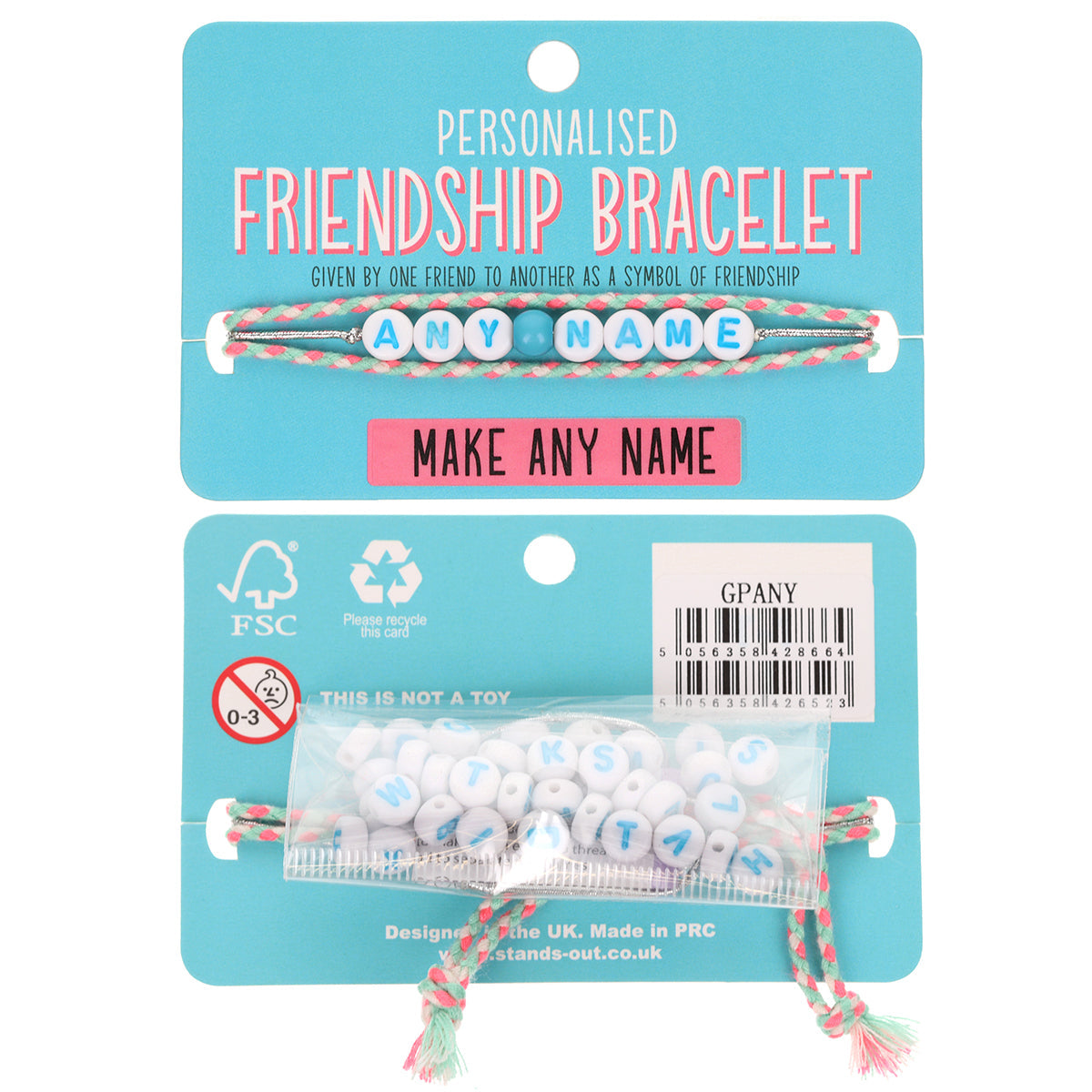 Celebrate friendship with this vibrant multicoloured 'Make Any Name' bracelet, designed for girls who love a fun accessory.