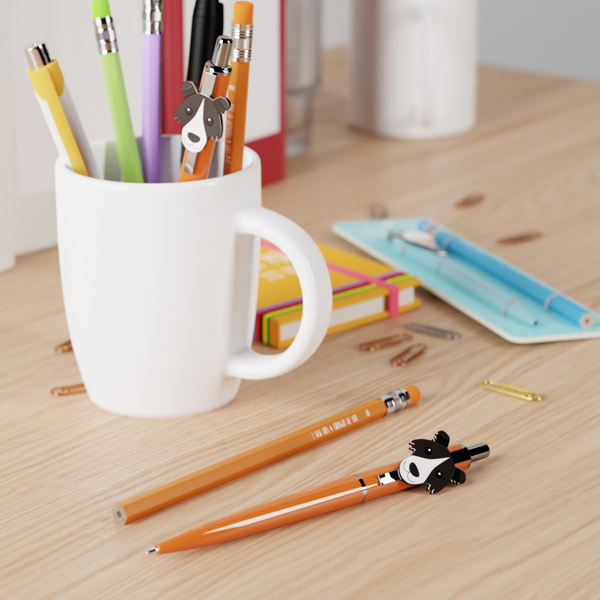 Fill your pencil case with style! This novelty orange Border Collie pen and pencil set brings a pop of fun to your stationery collection. Perfect for unleashing creativity, this kit is a must-have for stylish and functional writing essentials.