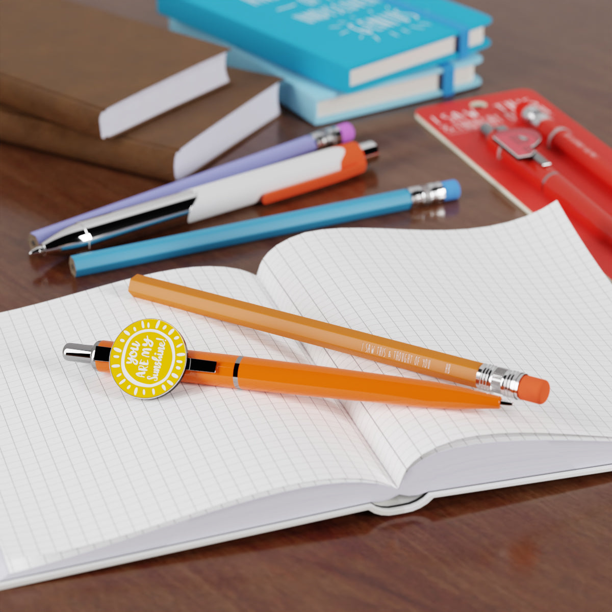 Fill your pencil case with style! This novelty orange 'You Are My Sunshine' pen and pencil set brings a pop of fun to your stationery collection. Perfect for unleashing creativity, this kit is a must-have for stylish and functional writing essentials.