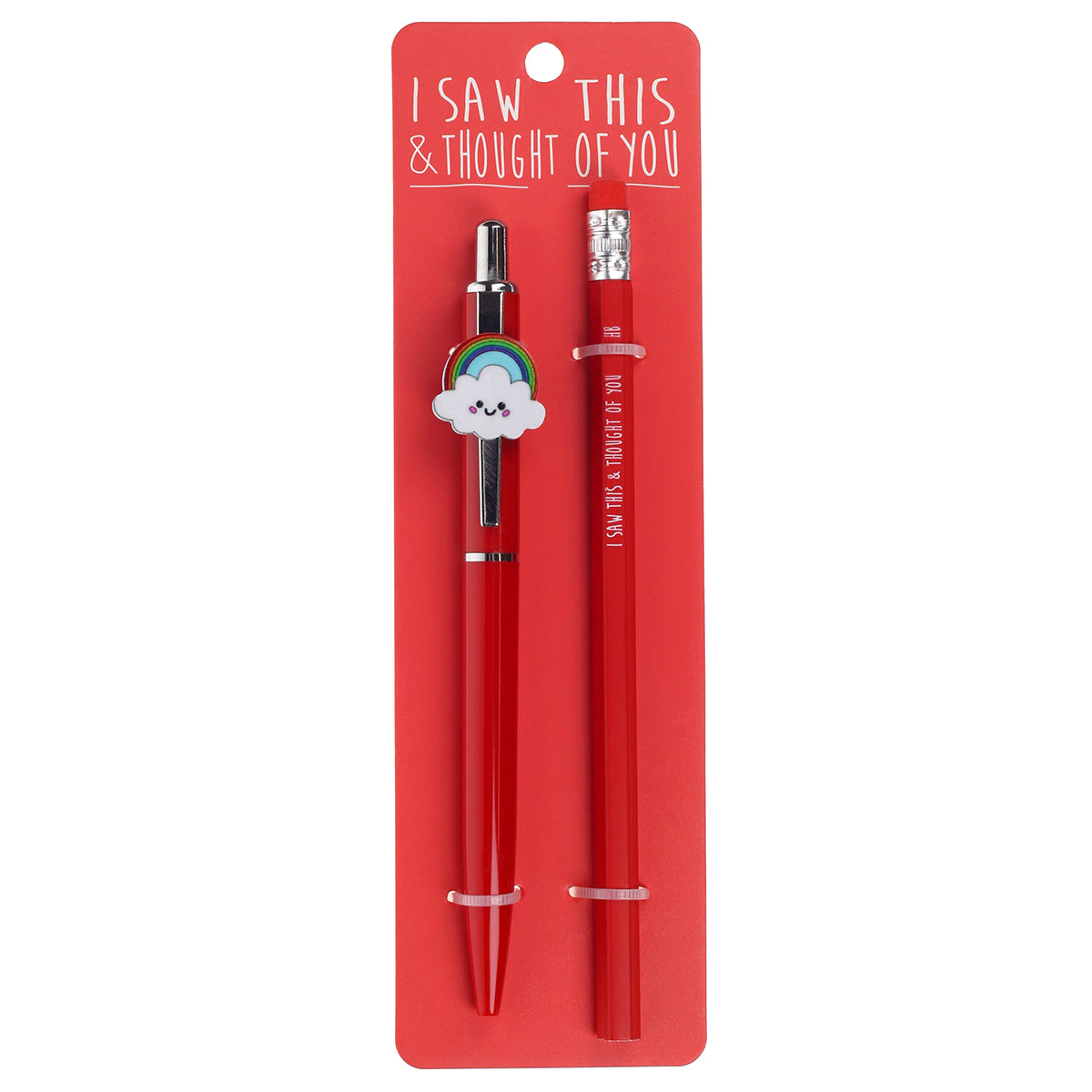 Fill your pencil case with style! This novelty red 'Rainbow And Cloud' pen and pencil set brings a pop of fun to your stationery collection. Perfect for unleashing creativity, this kit is a must-have for stylish and functional writing essentials.