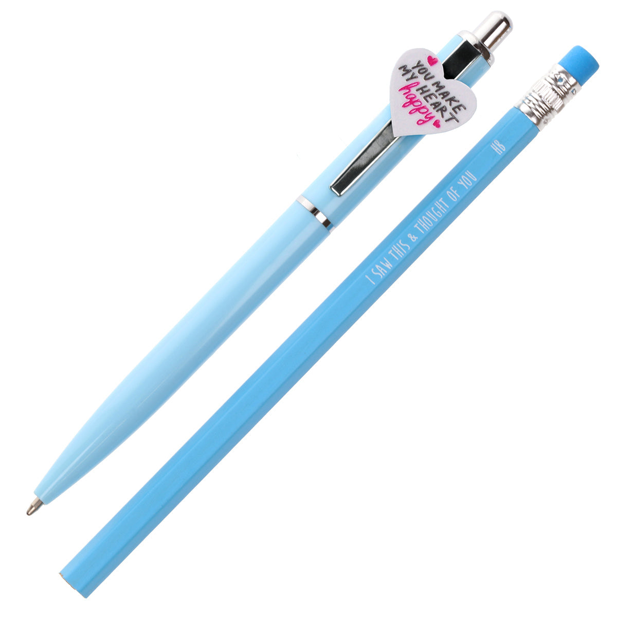 Fill your pencil case with style! This novelty blue 'You Make My Heart Happy' pen and pencil set brings a pop of fun to your stationery collection. Perfect for unleashing creativity, this kit is a must-have for stylish and functional writing essentials.