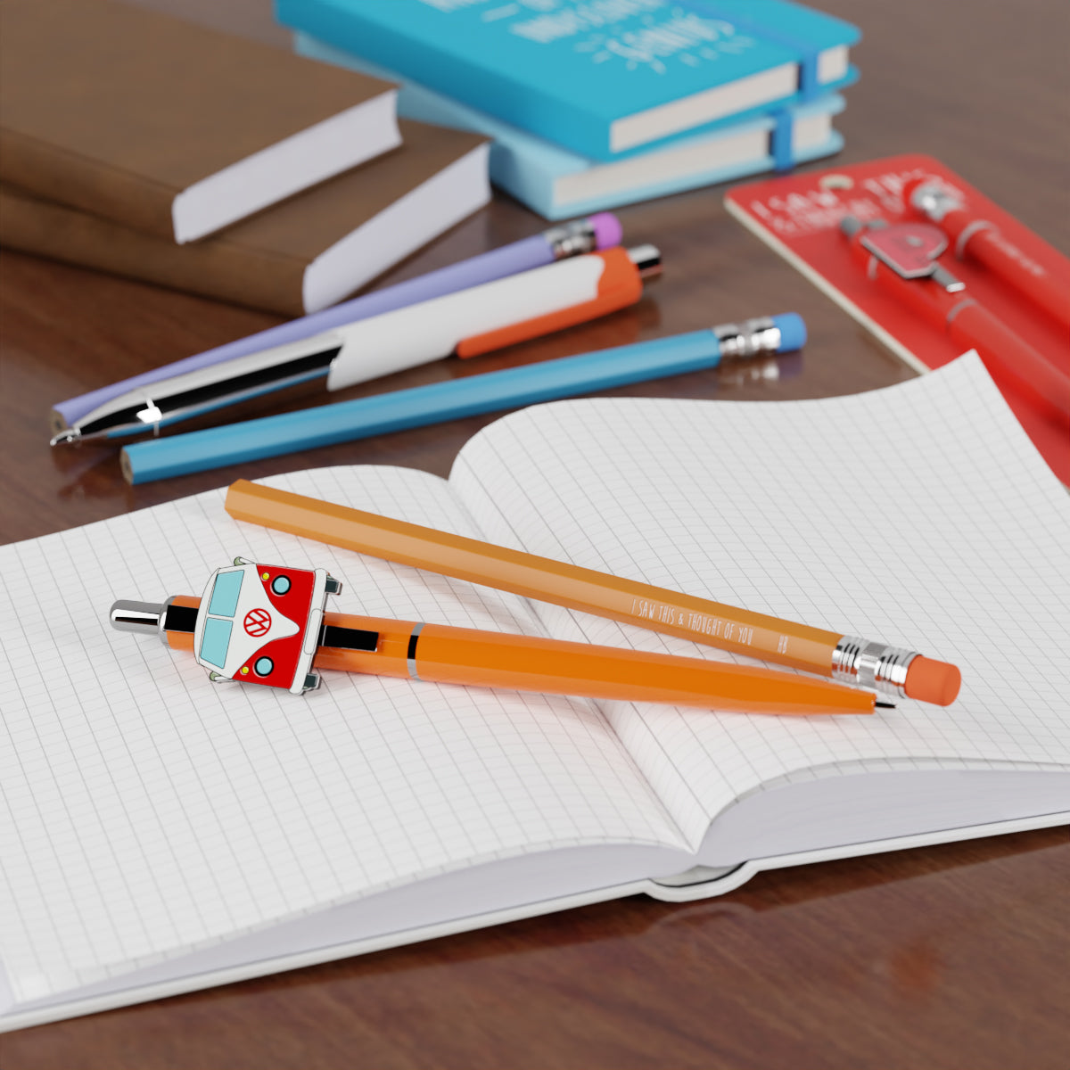 Fill your pencil case with style! This novelty orange 'Campervan' pen and pencil set brings a pop of fun to your stationery collection. Perfect for unleashing creativity, this kit is a must-have for stylish and functional writing essentials.