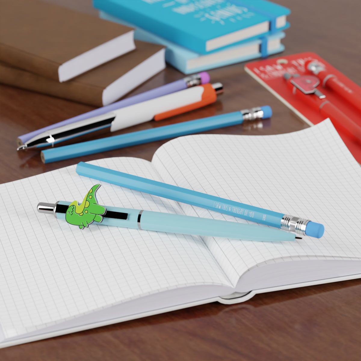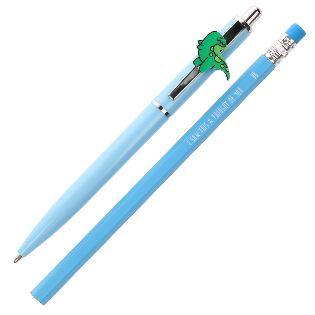 Fill your pencil case with style! This novelty blue 'Dinosaur' pen and pencil set brings a pop of fun to your stationery collection. Perfect for unleashing creativity, this kit is a must-have for stylish and functional writing essentials.