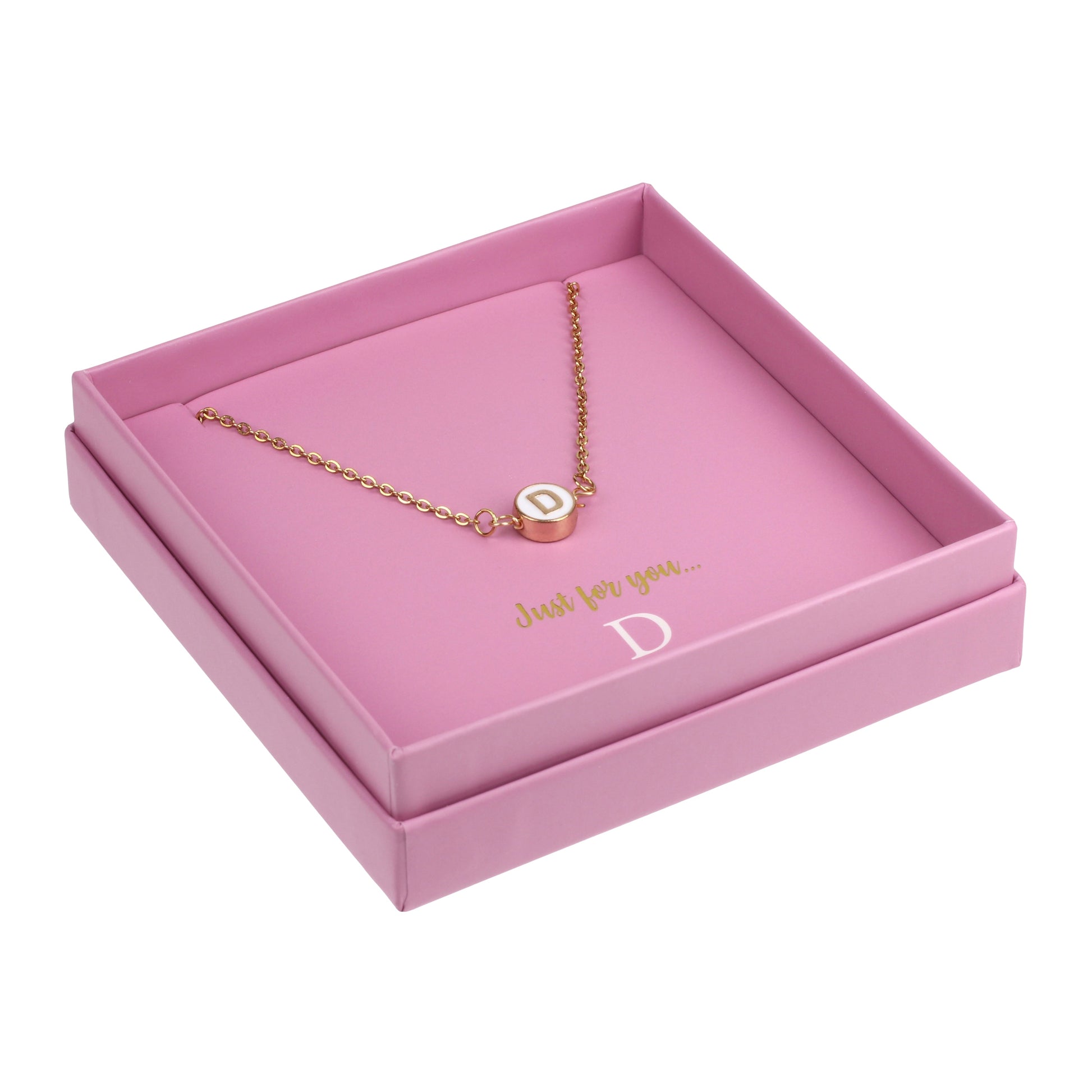 Introducing our personalised name necklace, a stunning accessory designed to bring elegance and individuality to any look. This necklace features the initial 'D', beautifully crafted with round gold-tone beads that showcase a delicate white centre and striking gold-tone letters.