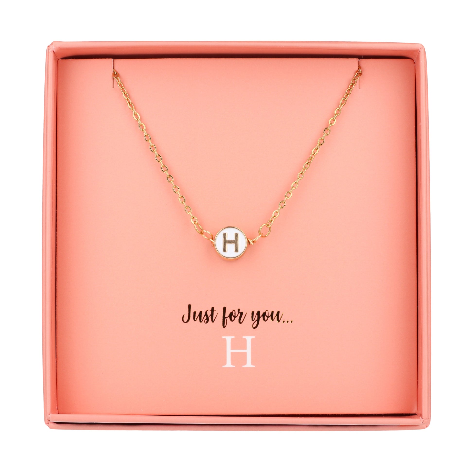 Introducing our personalised name necklace, a stunning accessory designed to bring elegance and individuality to any look. This necklace features the initial 'H', beautifully crafted with round gold-tone beads that showcase a delicate white centre and striking gold-tone letters.