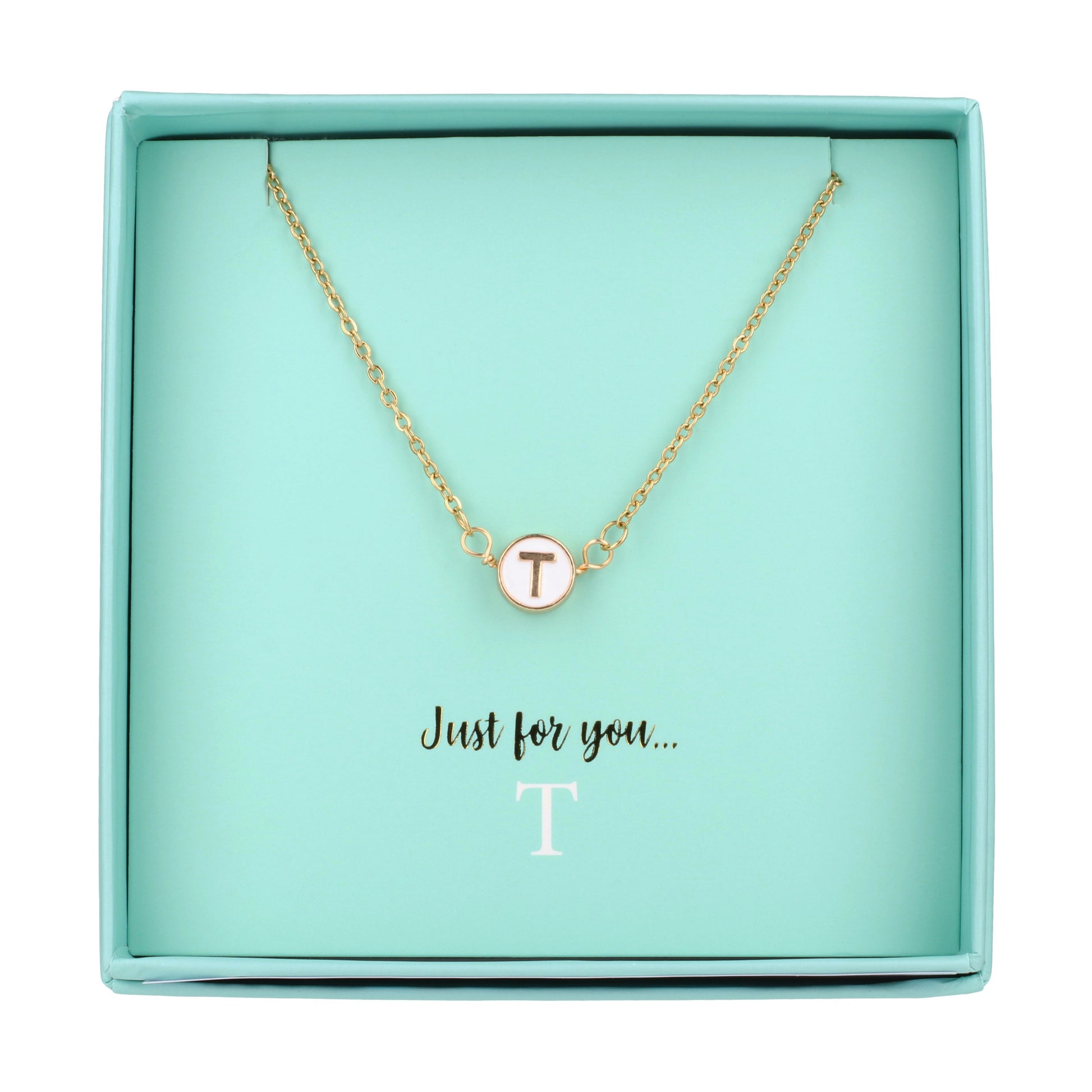 Introducing our personalised name necklace, a stunning accessory designed to bring elegance and individuality to any look. This necklace features the initial 'T', beautifully crafted with round gold-tone beads that showcase a delicate white centre and striking gold-tone letters.