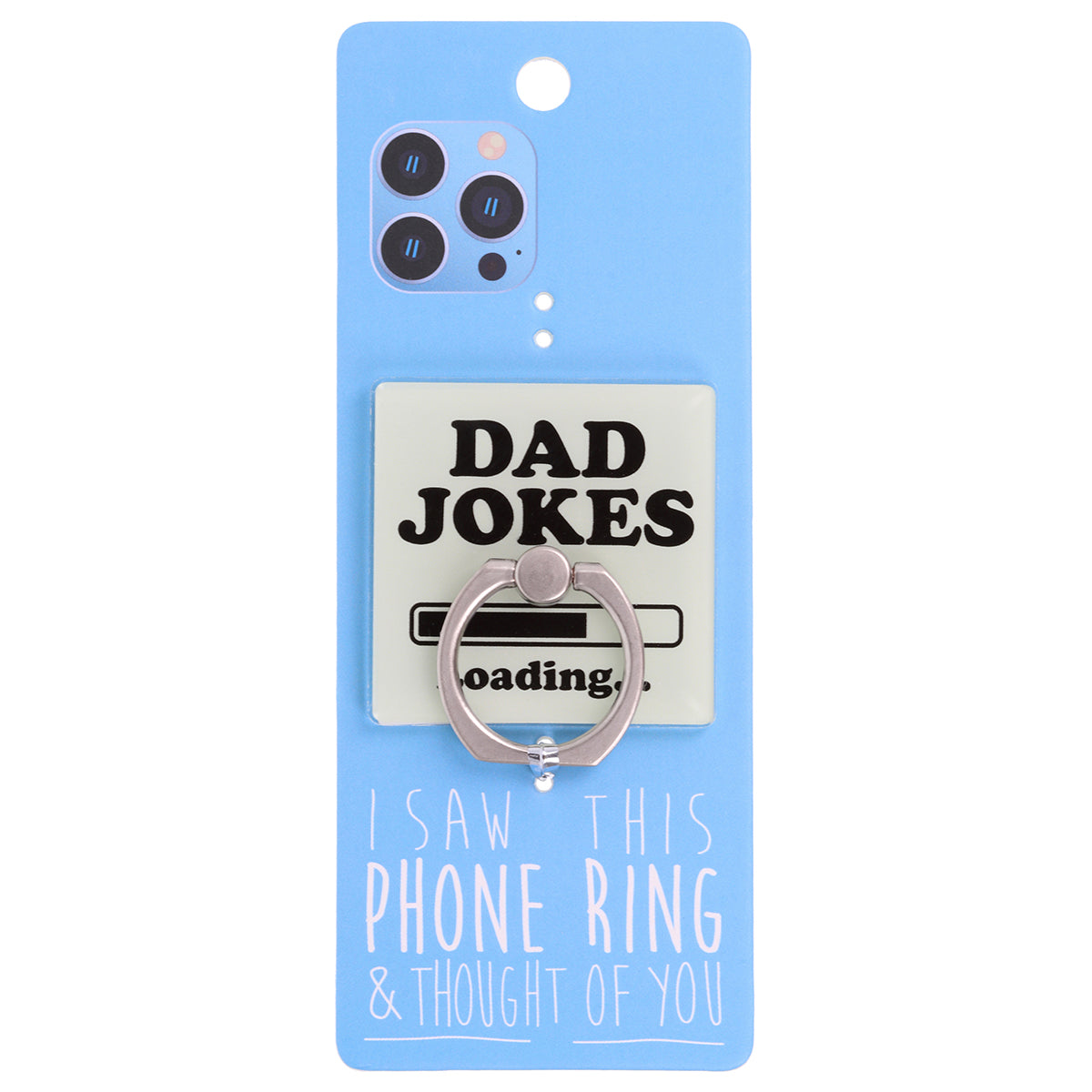 Elevate your phone game with this must-have accessory! This 'Dad Jokes Loading' phone ring makes snapping selfies and texting a breeze, while the 360° rotation provides a secure grip and the 180° tilt lets you prop your phone up for hands-free use.