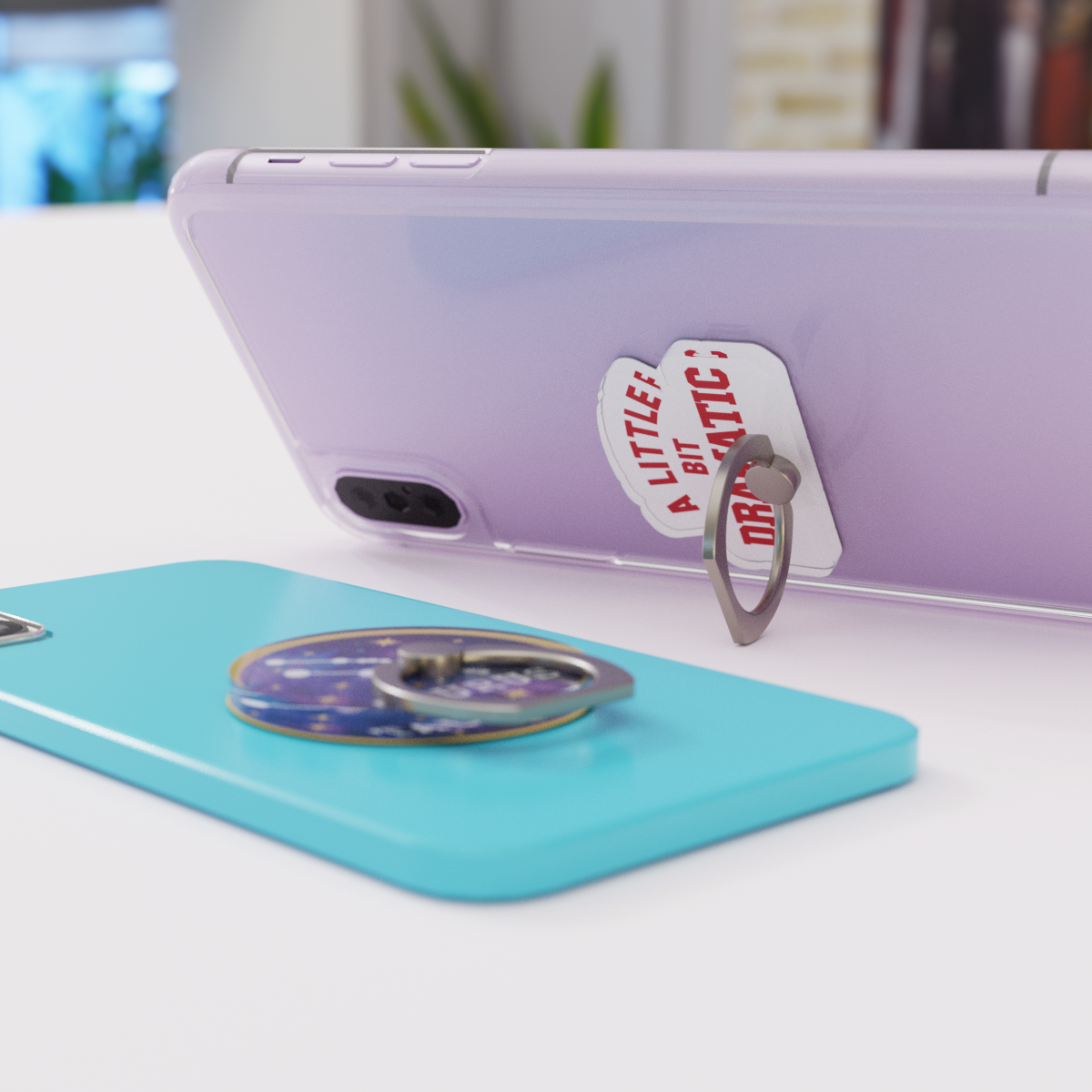 Elevate your phone game with this must-have accessory! This 'A Little Bit Dramatic' phone ring makes snapping selfies and texting a breeze, while the 360° rotation provides a secure grip and the 180° tilt lets you prop your phone up for hands-free use.