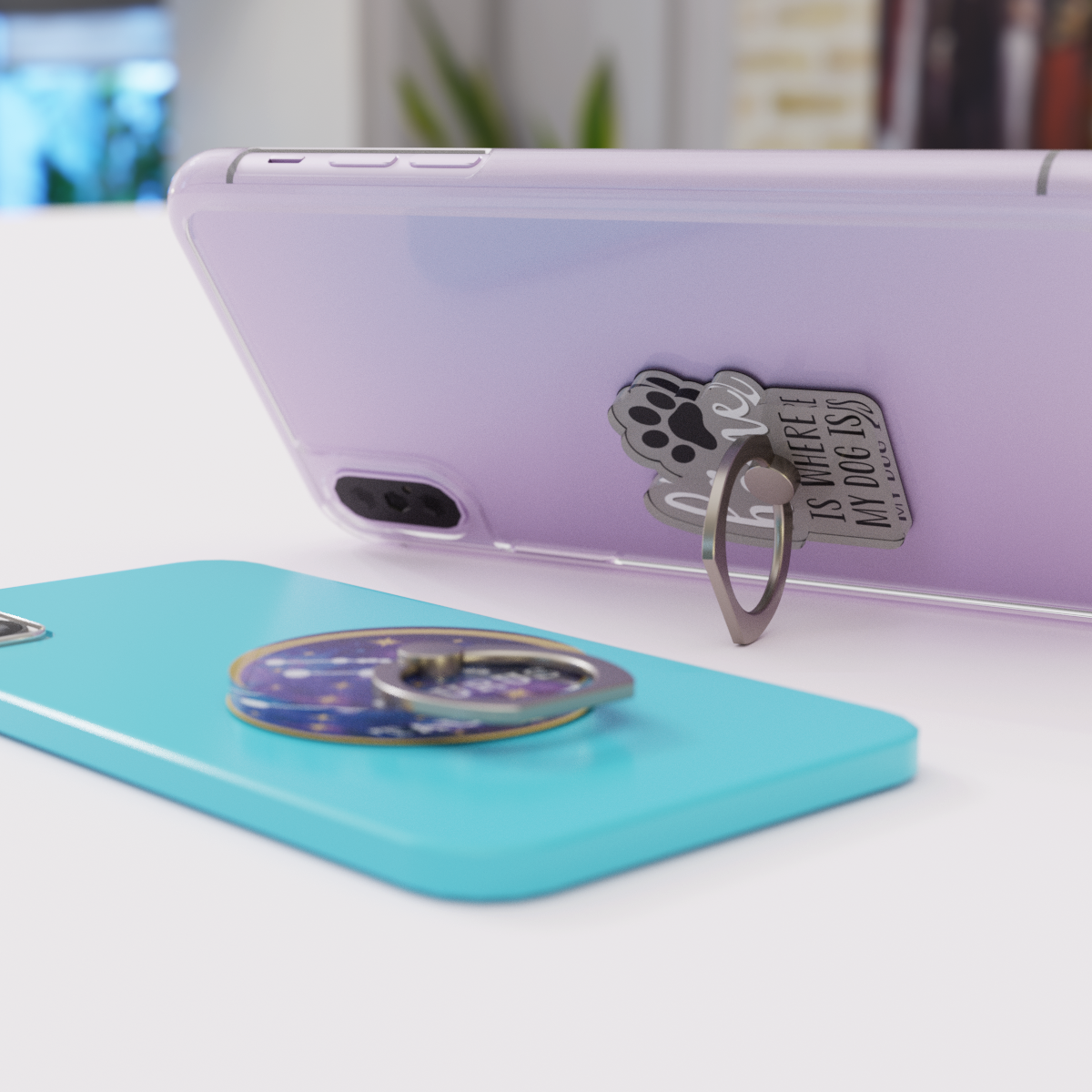 Elevate your phone game with this must-have accessory! This 'Home Is Where My Dog Is' phone ring makes snapping selfies and texting a breeze, while the 360° rotation provides a secure grip and the 180° tilt lets you prop your phone up for hands-free use.