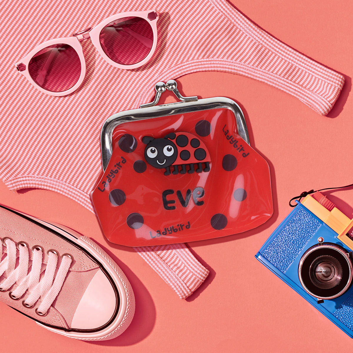 Introducing Purse Pals - your new stylish and fun accessory! This cute and colourful PVC purse comes with a unique silicone animal character, and is printed with 'Eve' for that personal touch.