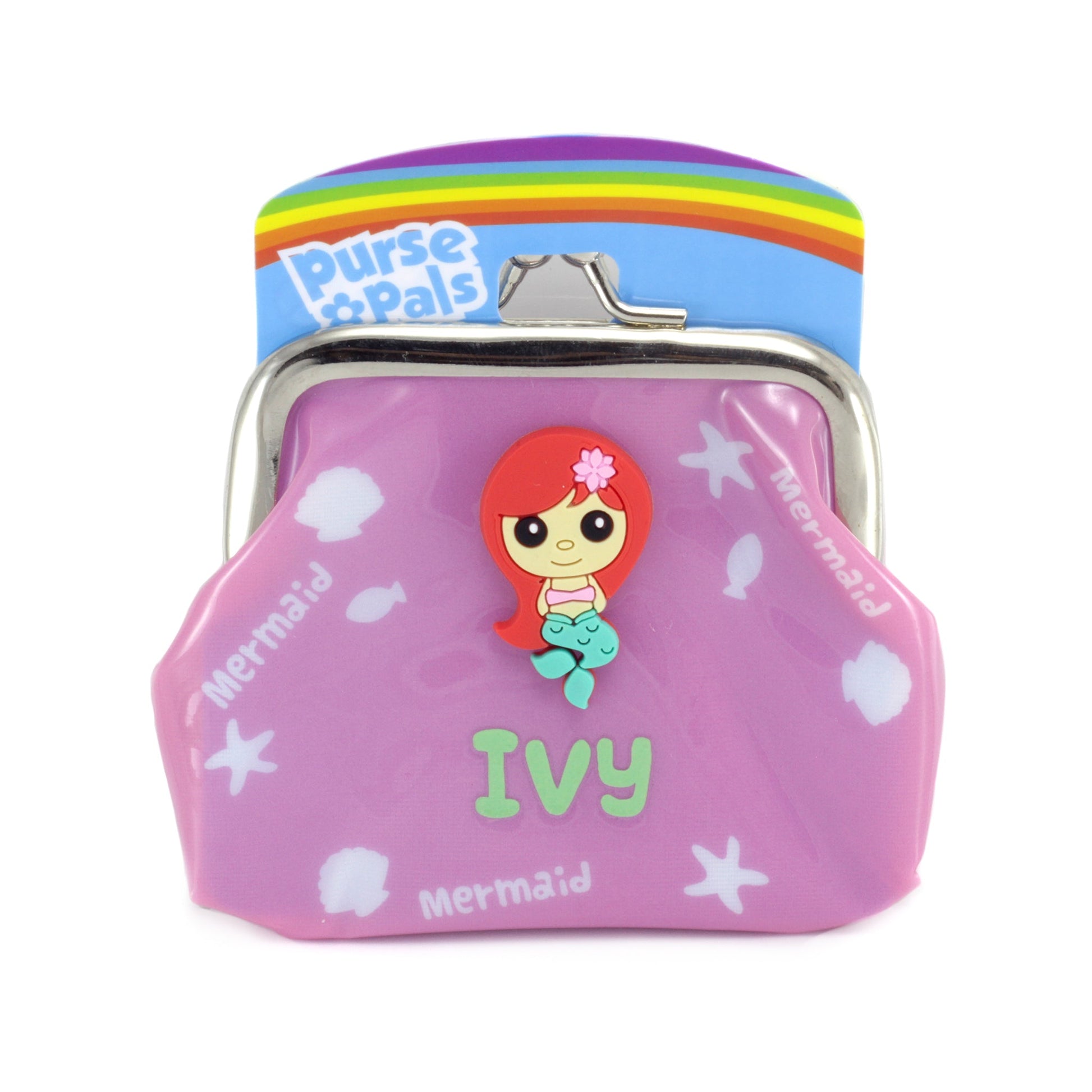 Introducing Purse Pals - your new stylish and fun accessory! This cute and colourful PVC purse comes with a unique silicone animal character, and is printed with 'Ivy' for that personal touch.