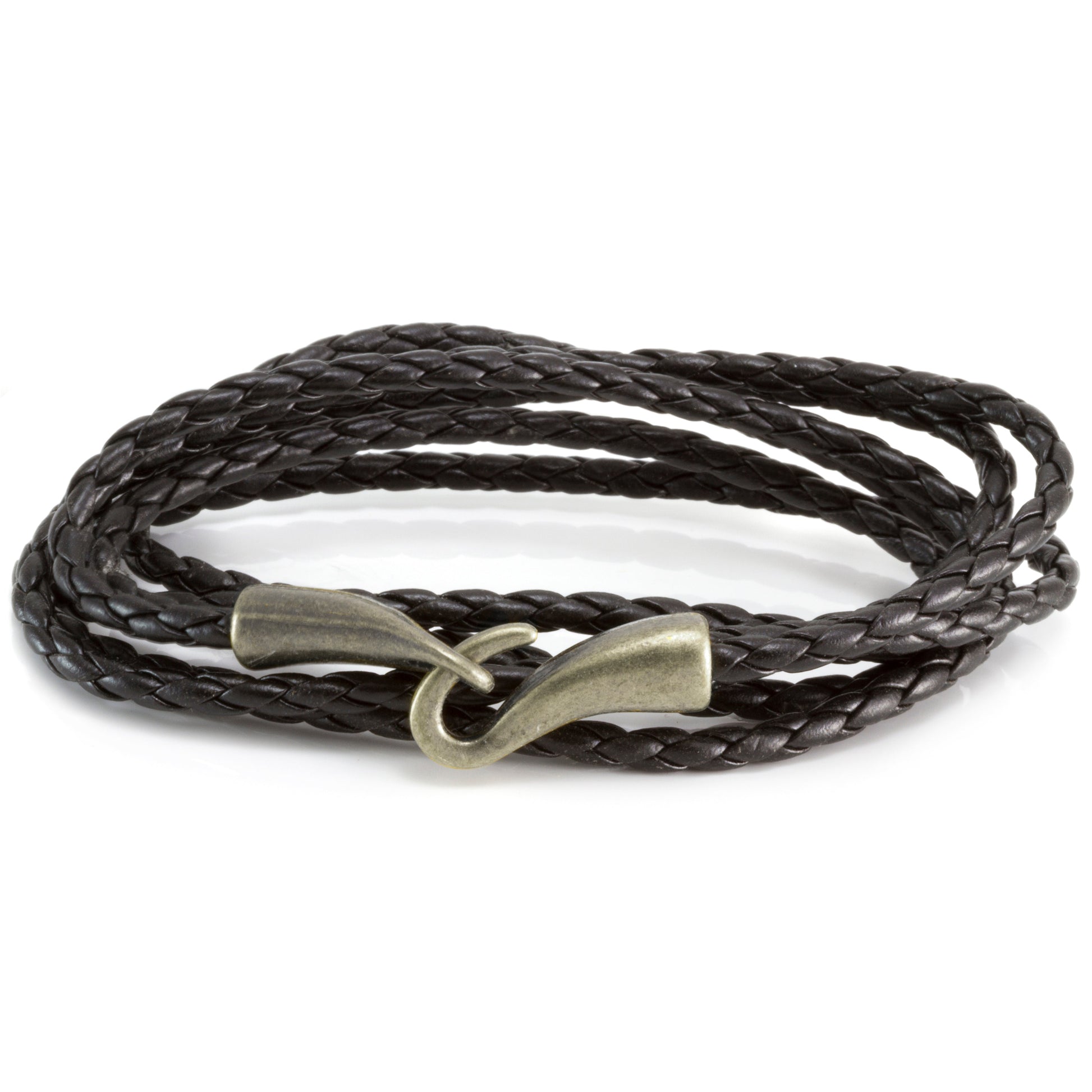 Q5 - Quest Mens Black Braided Leather Bracelet With A Gold Hook Fastening